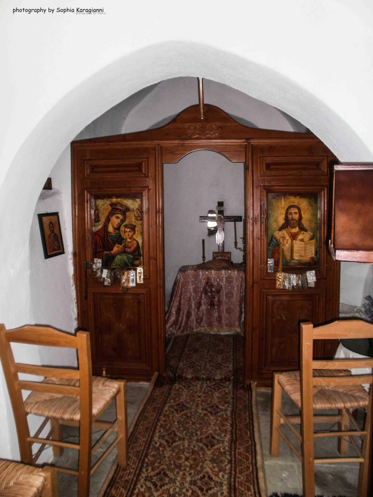 | χαρακτηριστικό το διπλό τόξο στο ταβάνι από το εσωτερικό του ναού |
